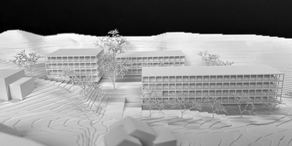 Anerkennungspreis - aus dem Jurybericht: "Die städtebauliche Lösung wird durch ein Ensemble aus drei unterschiedlich langen Baukörpern mit variierenden Höhen gebildet. Diese gruppieren sich um eine gemeinsame Mitte – den Marktplatz – von dem alle Bauteile erschlossen werden. Beim „Haus der Prisma“ erfolgt die Erschließung der Etagen über ein innenliegendes Treppenhaus, während die Längsbaukörper der IIG über eine nordseitige Laubengangerschließung zugänglich sind. Durch die versetzte Anordnung der Baukörper entsteht neben dem zentralen Marktplatz ein zusätzlicher Freiraum, der Platz für einen Spielplatz und andere gemeinschaftliche Aktivitäten bietet...