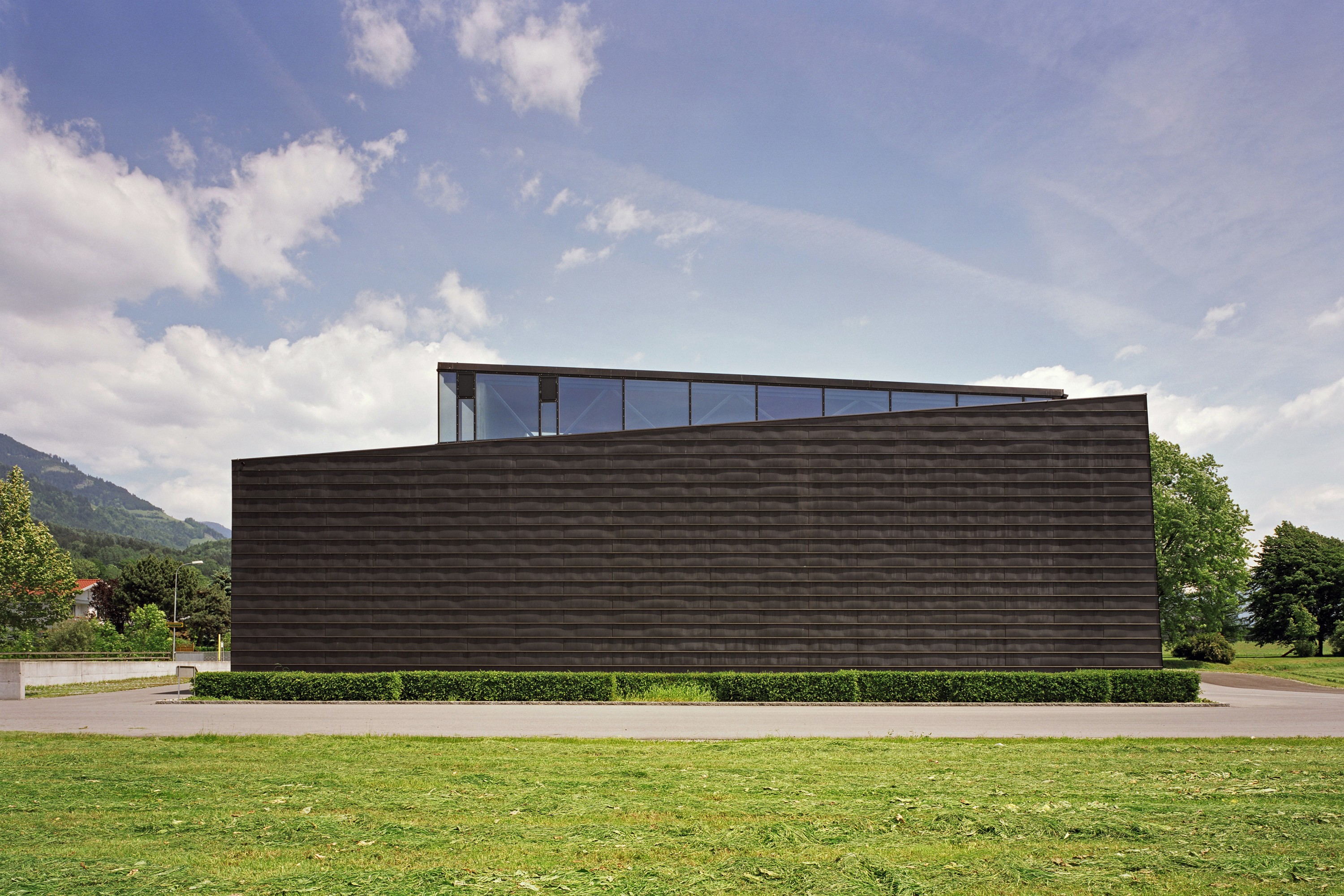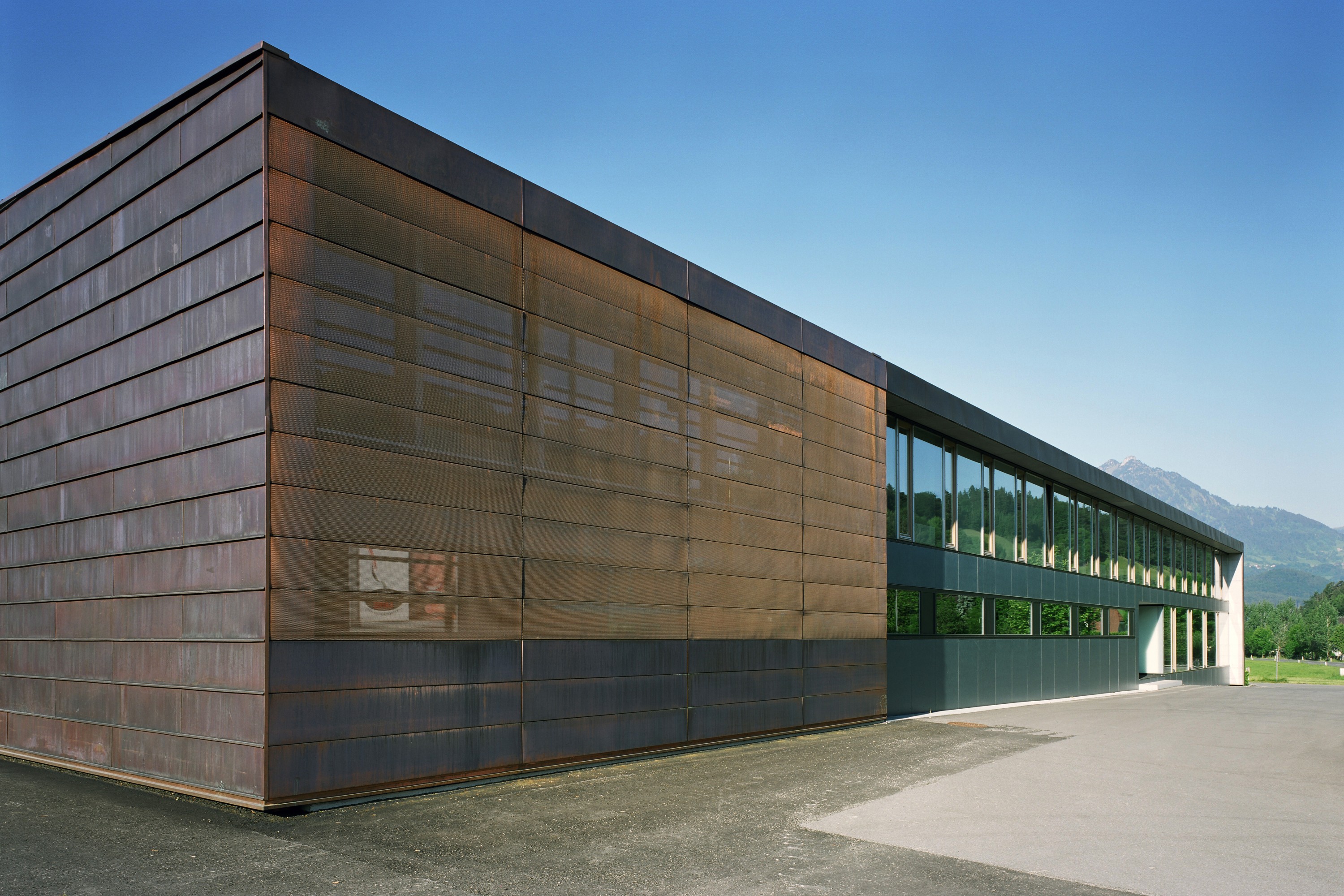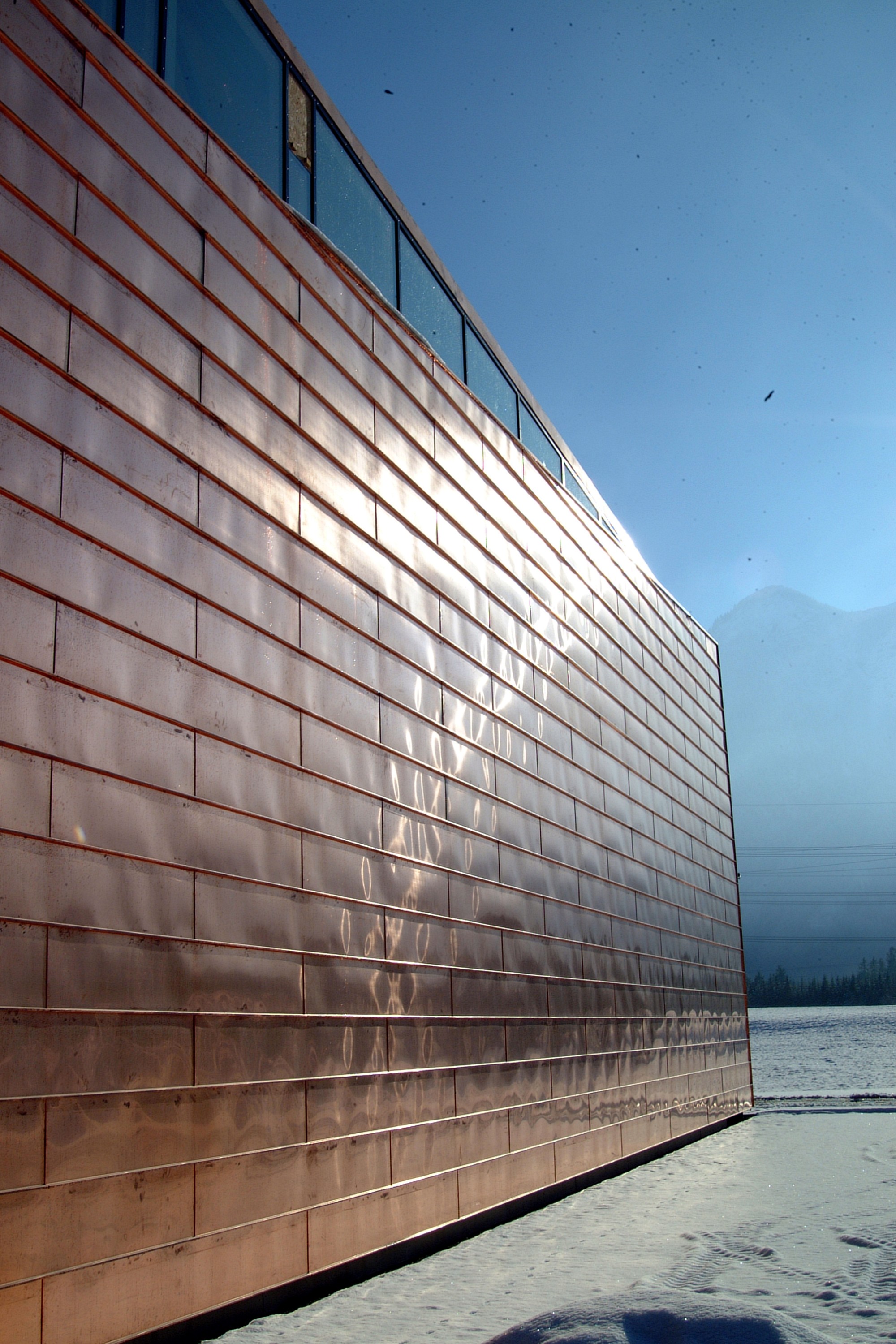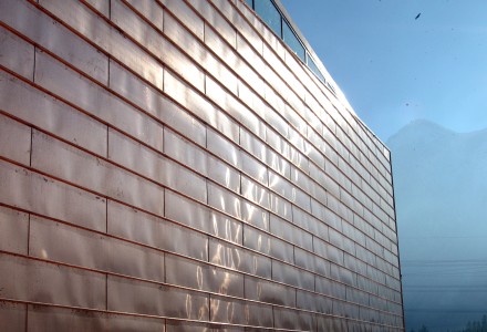 Über das gesamte Gebäude ist eine Schale, eine Haut aus Kupfer gestülpt: Dach, Ost- u. Westwand.